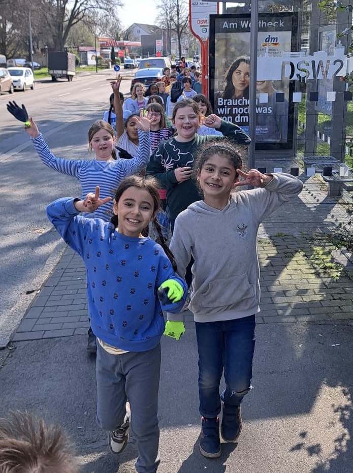 Die Patenklassen spazierten in der letzen Woche vor den Osterferien mit Müllsäcken, Handschuhen und Müllzangen ausgestattet durch den Stadtteil und sammelten Müll in Brackel.
