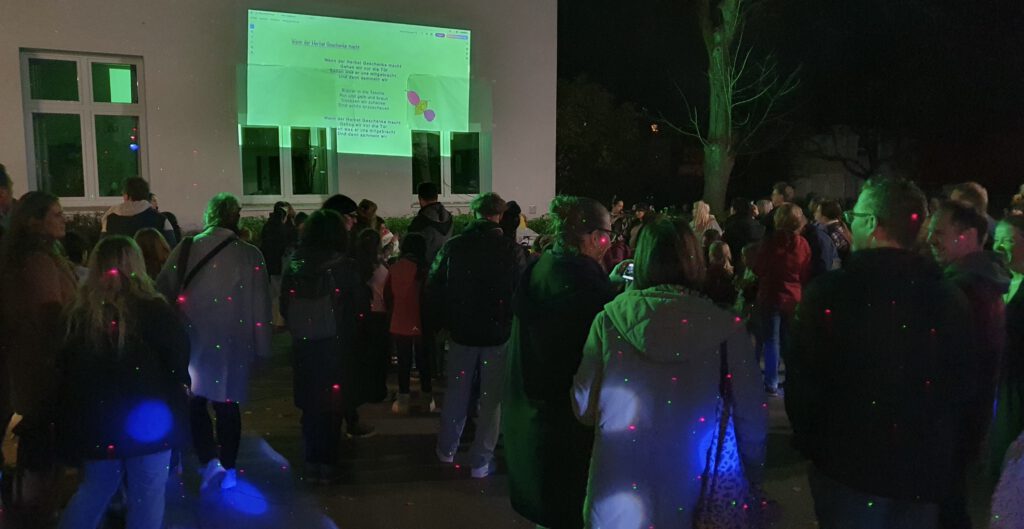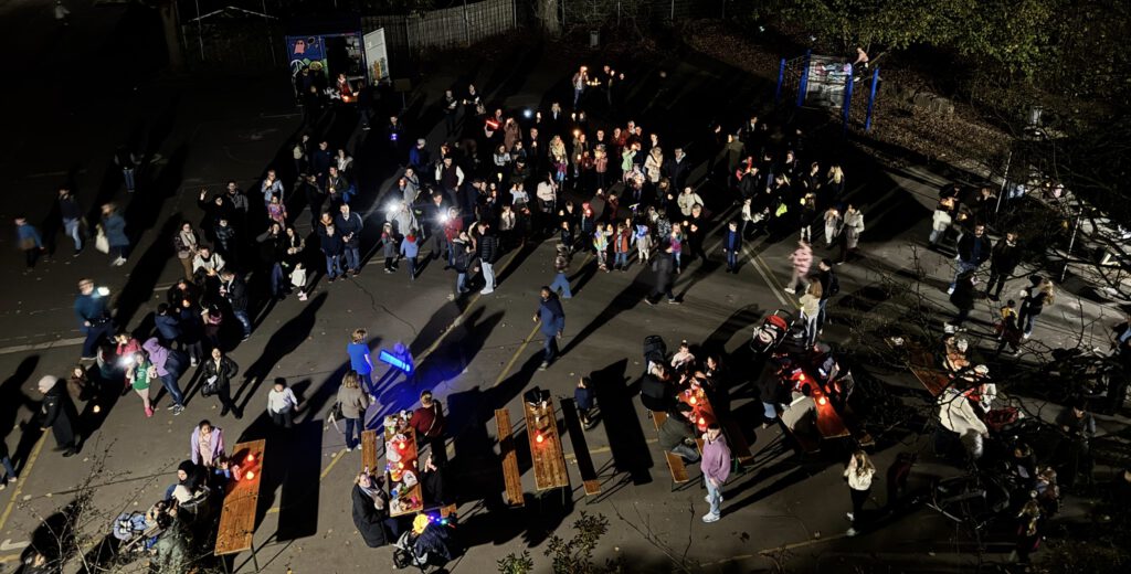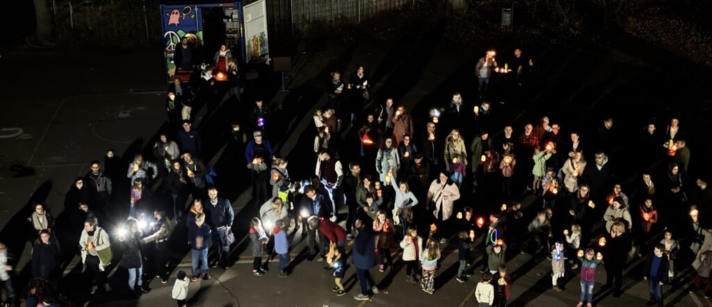 Am Nachmittag des 13.11. lud der Förderverein – unterstützt durch tatkräftige Eltern – alle Kinder, deren Familien und das Team der RHGS zu einem herbstlichen Lichterfest auf dem Schulhof der RHGS ein.