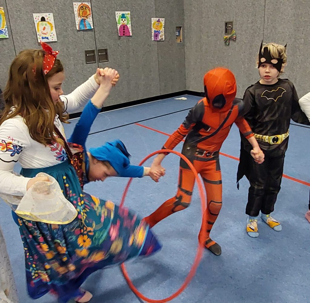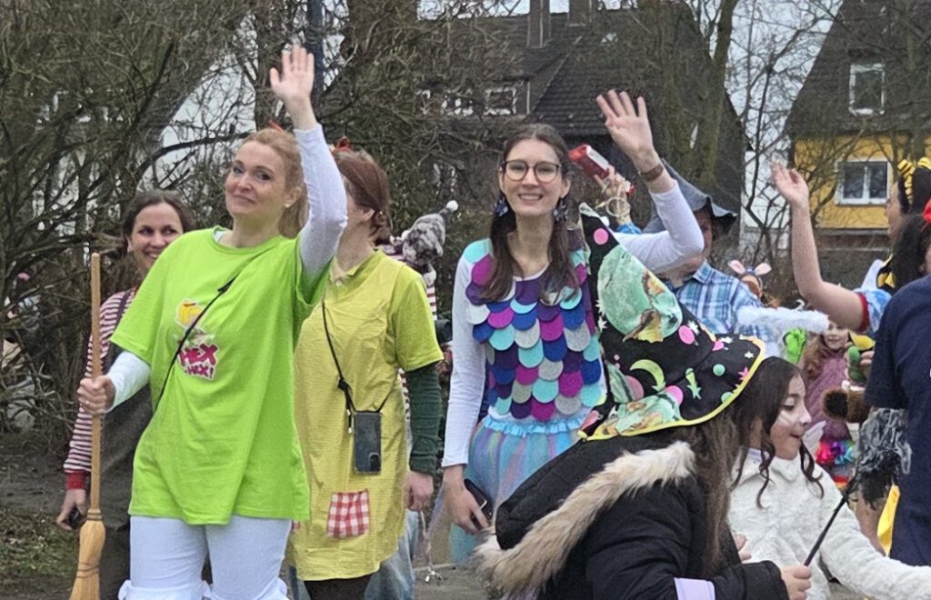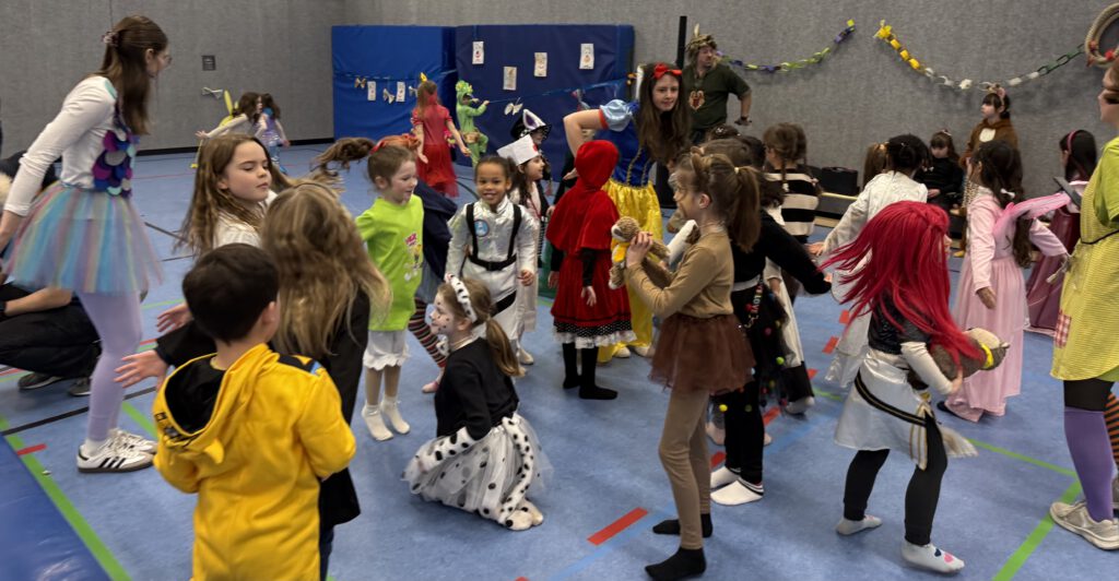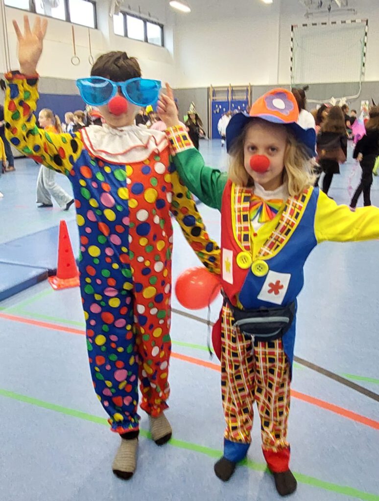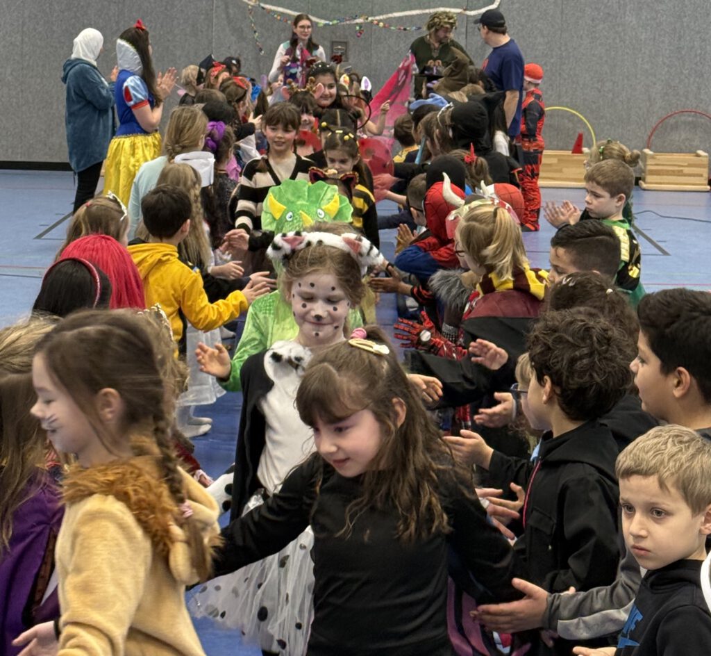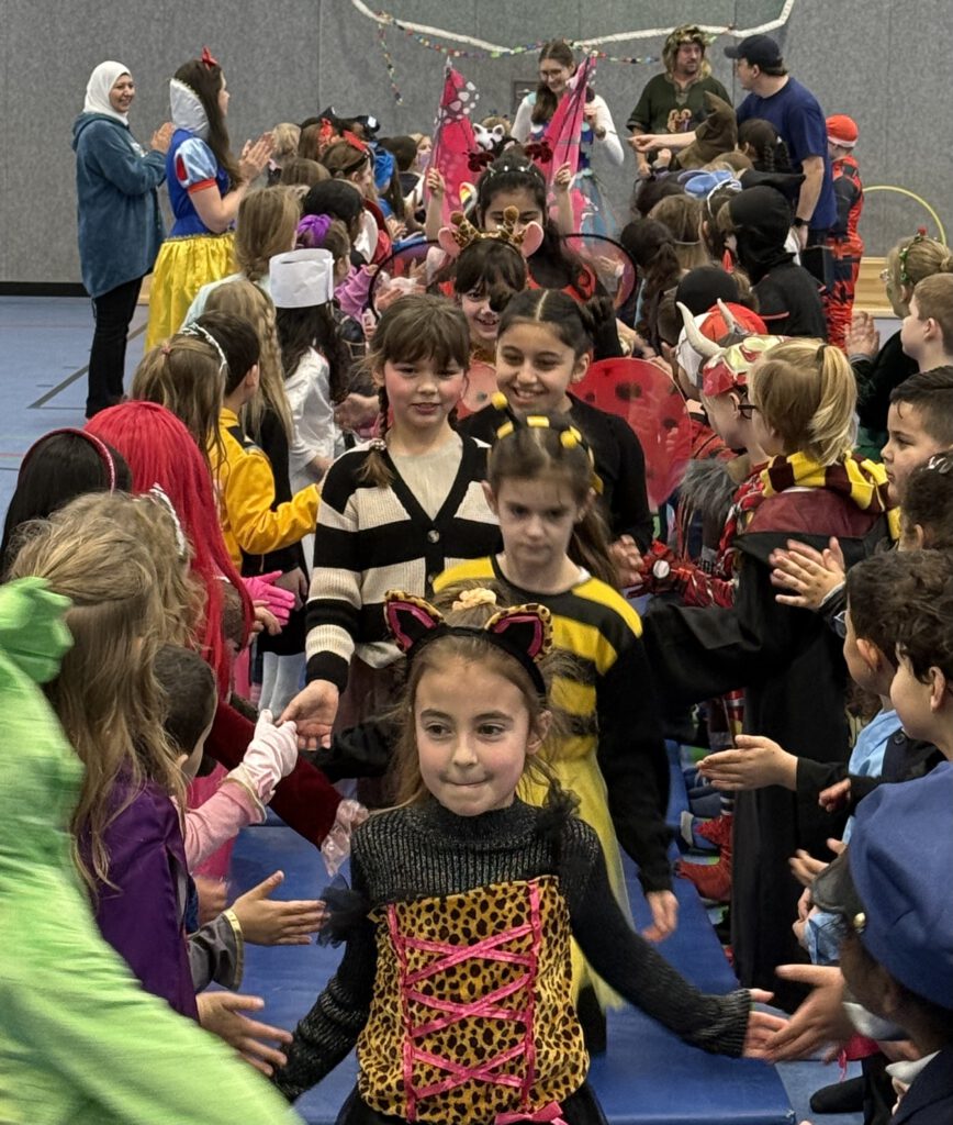 Auch die Kinder kamen bunt verkleidet und ausgelassen zur Schule – so wurden die Lehrer*innen um 8:15 Uhr bei der kleinen, traditionellen Begrüßungspolonaise über den Schulhof von Rittern, Meerjungfrauen, Superhelden, Schmetterlingen, Prinzessinnen und vielen anderen kreativ verkleideten Kindern begrüßt.