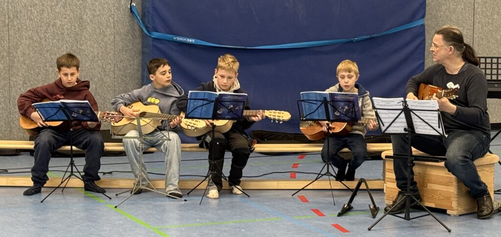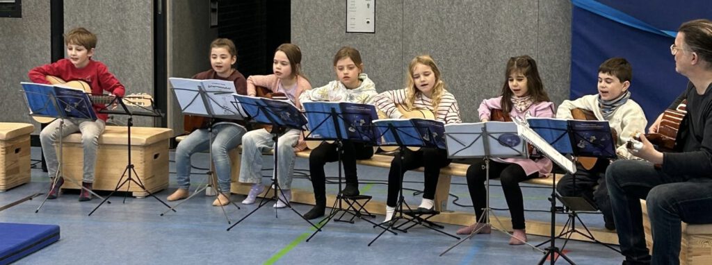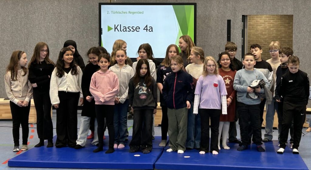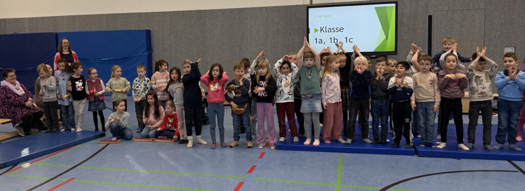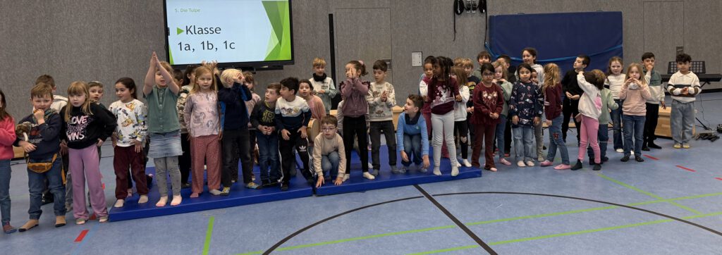 Wie an jedem letzten Schultag vor den Ferien trafen sich auch heute die Klassen in der Turnhalle zum Feriensingen.